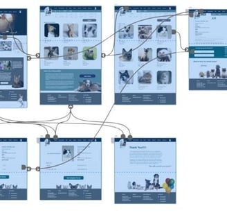 A fase de ideação envolveu workshops com stakeholders, onde priorizamos funcionalidades essenciais e estabelecemos métricas claras de sucesso. Nosso foco era com resultados mensuráveis: redução nas taxas de devolução, diminuição no tempo médio que um animal permanece no abrigo, e aumento na satisfação tanto de adotantes quanto de organizações de resgate