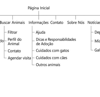 A arquitetura da informação foi cuidadosamente planejada para proporcionar uma navegação intuitiva, com um dashboard personalizado para adotantes acompanharem suas interações, favoritarem pets e acessarem conteúdo educacional direcionado às suas necessidades específicas.